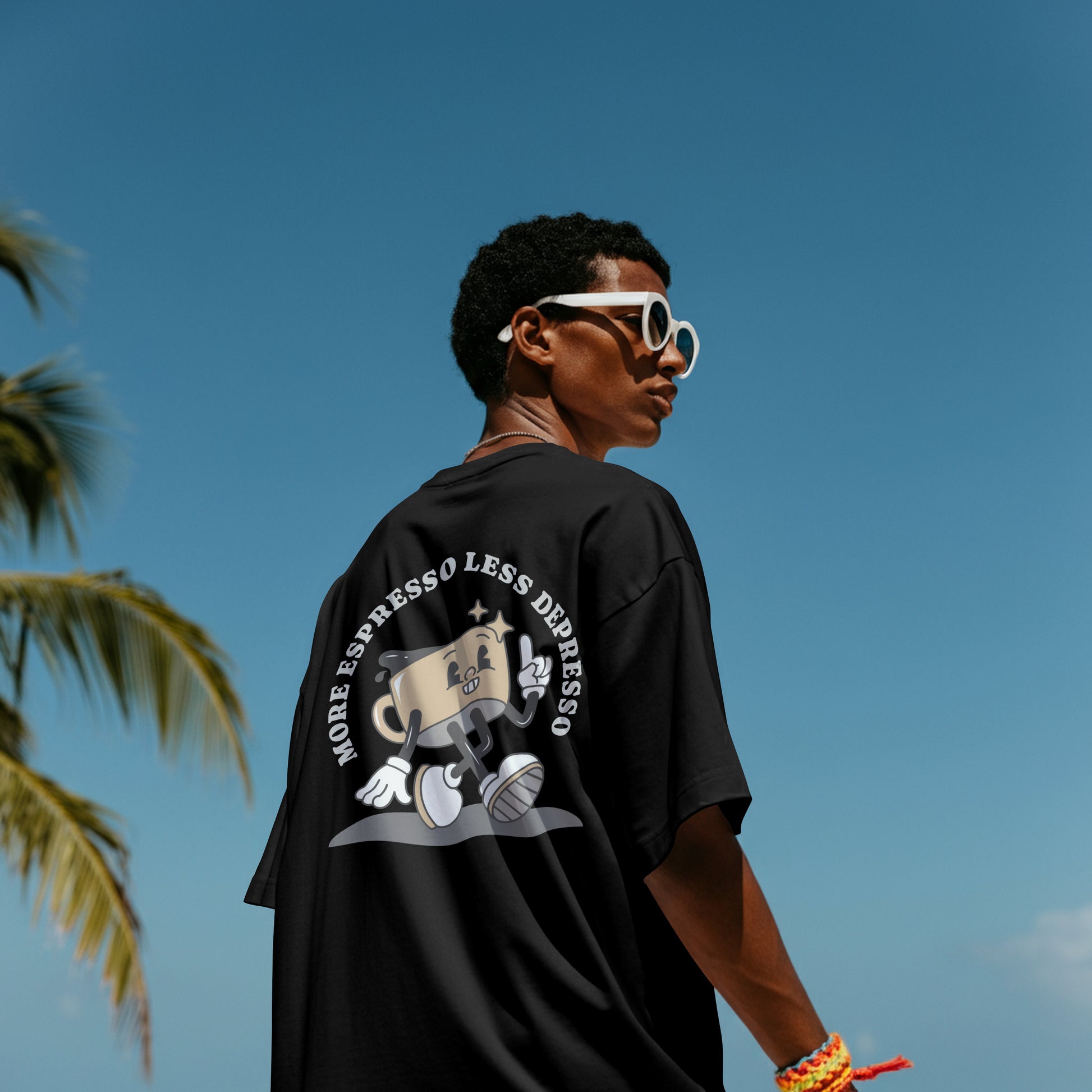 Fuel your day with caffeine and attitude. The More Espresso, Less Depresso design blends playful energy with streetwear edge — featuring a bold cartoon-style coffee cup graphic that says exactly what we’re all thinking.